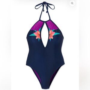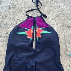 Black and Purple One Piece with Racerback and High-Cut Legs