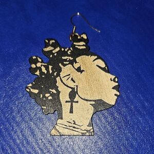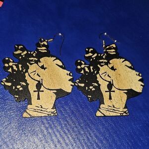 Stylish black and tan earrings with an Afrocentric design. Perfect for adding a unique touch to any outfit.
