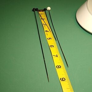 Elegant set of black and white hat pins. Perfect for adding a vintage touch to your accessories.