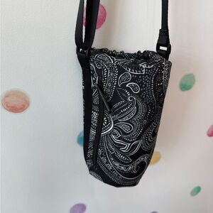 Stylish and versatile women's bag featuring a black and white pattern. Perfect for any occasion or a water bottle holder.