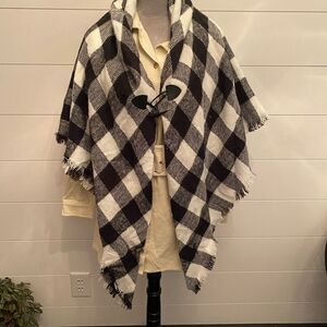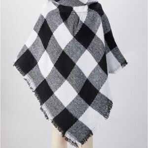 Cozy up with this stylish black and white plaid shawl. Perfect for adding a touch of elegance to any outfit.