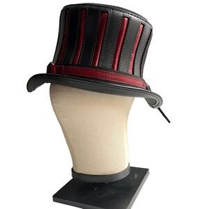 Black and Red Leather Top Hat - The Red Mad Hatter- 22.5”