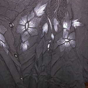 Black and white floral crochet button down blouse
