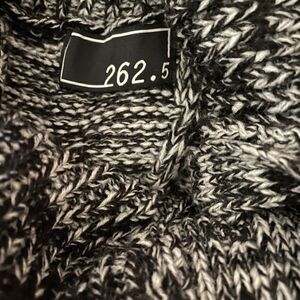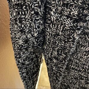 Neck has black buttons to wear as a turtleneck or a cowl neck