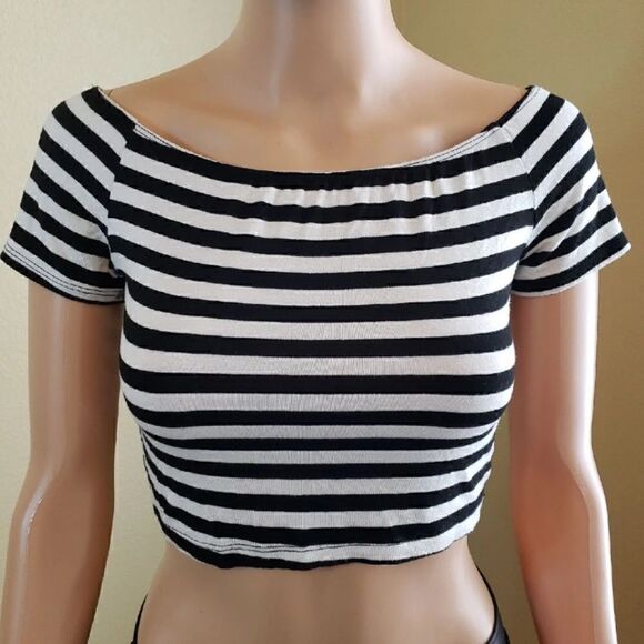 šŸ–¤ā€„Black and whiteā€ˆstripedĀ crop top