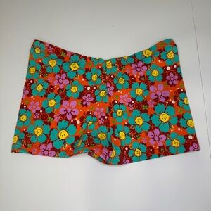 Make a splash in these bold and vibrant swim shorts from Blackbough! Featuring a colorful retro floral print with hibiscus and smiley face flowers on a bright orange background, these shorts are perfect for beach days, pool parties, or tropical vacations.