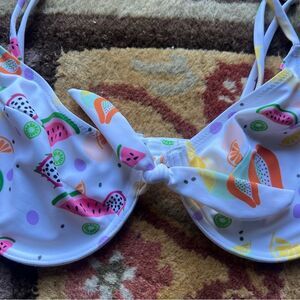 Blackbough swim bikini white with fruit salad print so cute only worn a few times in great condition tops a size Xl bottoms are M (can be sold separately)