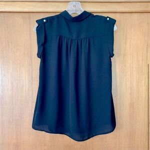 Black cap sleeve blouse. Hardly worn, perfect condition. 100% polyester Pit to pit - approximately 16.5” Shoulder to hem - approximately 23”