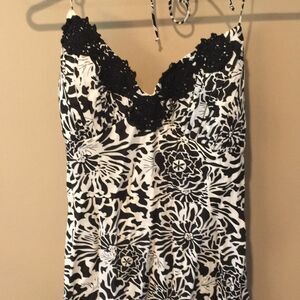 Black and cream cotton halter neck tie dress w/ side zip. Knee length. Excellent condition