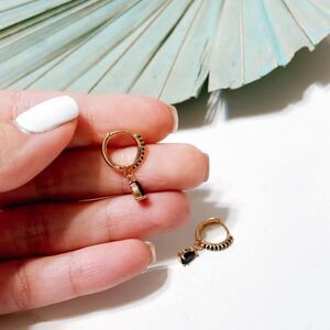 Black diamond hoop earrings in gold tone