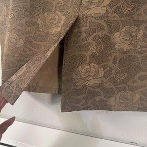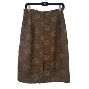 This elegant mid-calf skirt by Blacker By Stanley Blacker features a subtle floral pattern in shades of brown. Made of durable polyester fabric, it includes a rear zipper for easy wear and a rear slit for comfortable movement. Lined for added comfort and quality.