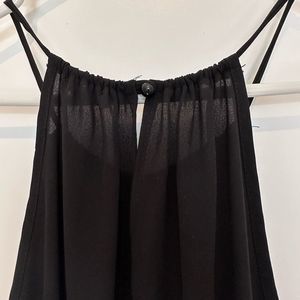 Black flowy dress with spaghetti straps.