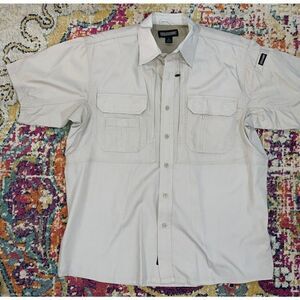Functionality, comfort and toughness blend together seamlessly in the Pursuit Short Sleeve Shirt. Six multi-purpose pockets and two hidden document pockets offer ample space to store your stuff. The gusseted underarms keep you moving freely and bartacks reinforce critical seams. Constructed of 4-oz polyester/cotton blend with a Teflon Shield+ fabric protector to repel stains, oil and water. It can take whatever you and the mission throw at it.
