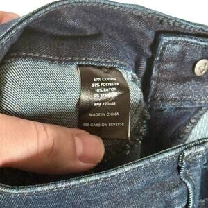 New with original tags, except price tag is missing. Features light stretch, and the color is a dark indigo blue color.