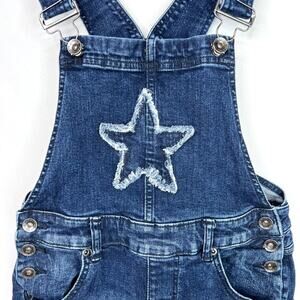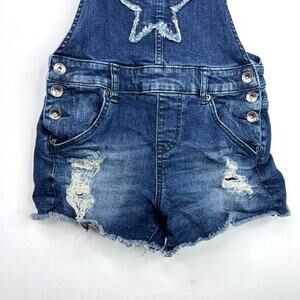 Hot Topic Blackheart brand denim shortalls with distressing and star detail. Size 0.