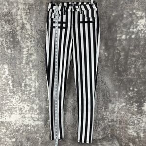 Blackheart Size 3 Stingerette Y2K Goth Emo Grunge Pants Black White Striped