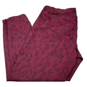 Blackheart Women's Hot Topic Burgundy Red Skull Print Skinny Low Jeans Size 20