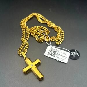 Blackjack BJP176G Mens Gold Stainless Steel Cross Pendant Necklace With CZ NIBWT