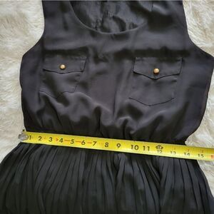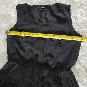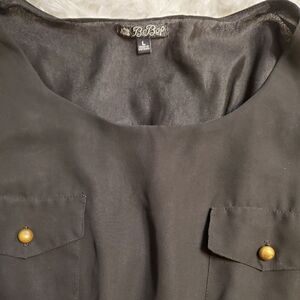 Be Bop size large. Stretchy at waist. Has two gold buttons on pockets. A little snug on top if you have a bigger chest.