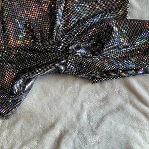 Ok, I'm gonna call it: shattered crystal is THE foil of 2014. We haven't had a new foil fabric in a while, so when we discovered this stuff....how could we resist? It's super shiny in a really cool, holographic way, and because the foil is made up of itty bitty little dots it's also very durable. You can stretch and jump and fight crime to your dark little heart's content.