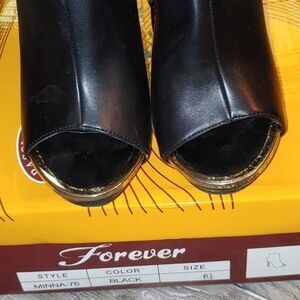 Black peep a boo toe heeled boots Sz 6.5