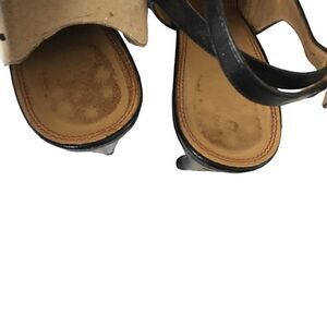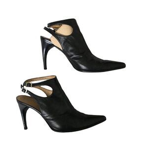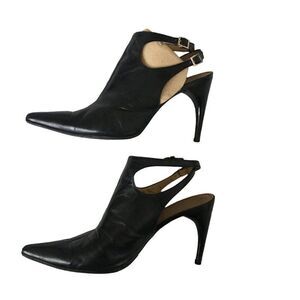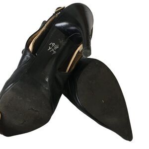 Black pointy toes shoes two straps goes around the heel buckles will need to be fixed at some point1