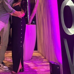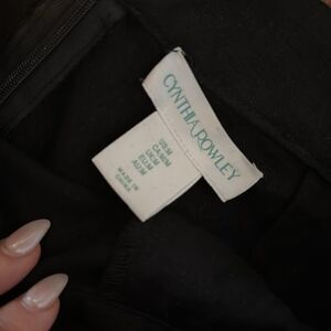 Black high waisted linen pants with seashell button side and ankle slit detail
