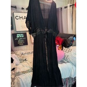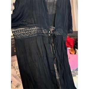 Black sheer lace tulam kimono coverup duster dress robe nwt 2xl fits plus