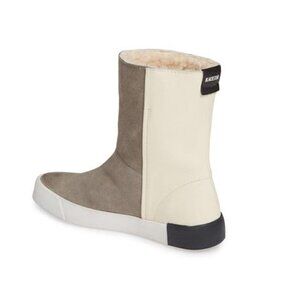 Cozy genuine shearling lines a street-chic boot crafted from soft leather and grounded by a bold bumper sole.