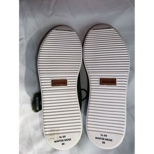 NWT Blackstone SL-69 in Winter Moss. An olive moss green color with a black splatter distressed look exterior. These shearling-lined women's sneakers feature a clean upper from great nubuck, the tongue of the shoe has the softest sheepskin. Blackstone's own designed cup-sole and a leather brand tag. These sneakers are your best friend during cold days and will keep you warm and cozy. Wool shearling interior. Size 39 EU and a US size 9.