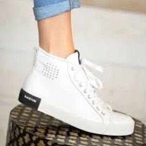 women’s white leather shoes, women’s leather tennis shoes, round tie sneakers, women’s Blackstone shoes on sale, preowned Blackstone shoes for women size 6.5, women’s comfy casual footwear for women, women’s athleisure shoes, women’s loungewear shoes, gorpcore, women’s outerwear, outdoor shoes, white leather sneakers for women, luxury sneakers, women’s white leather high-tops on sale size 6.5, gym, workout, hiking, athletic shoes, white leather tennis shoes, activewear for women, back to school shoes, streetwear for women, trending shoes for women for sale.