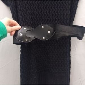 No boundaries black sweater dress/long shirt. Size xxl 19 Juniors. Some pilling but not bad. Good condition. Back of belt is worn, front seems fine.