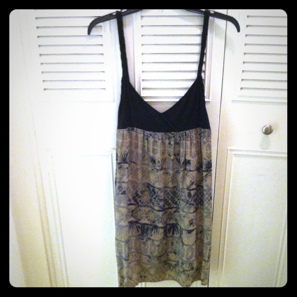 Gently worn (less than 3 times). Black/taupe/grey braided cami boho print dress. Overlaps at breastbone. Has pockets. By silence + noise from Urban Outfitters.