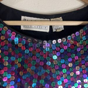 Blacktie Oleg Cassini Dress Womens 14 Sequin Long Sleeve Cocktail Multicolor 90s