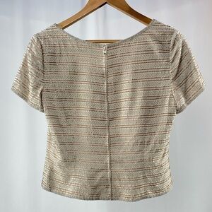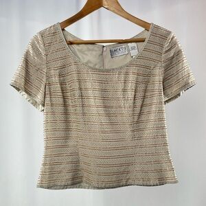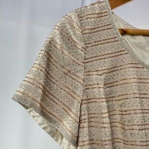 Blacktie Oleg Cassini Silk Beaded Short Sleeve Blouse in Cream Gold Size 8