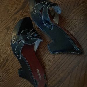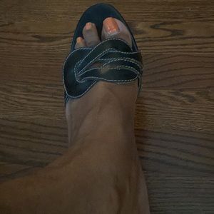Black/white slip on wedges