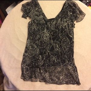 Black/white blouse w/ cami & wispy sleeves, EUC