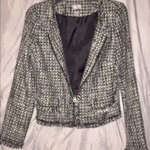 Black/white tweed zip up jacket