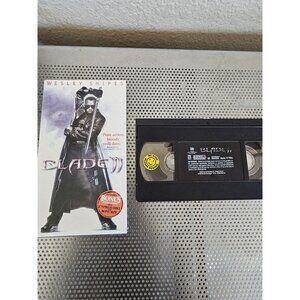 Get ready for non-stop action and adventure with Guillermo del Toro's Blade II on VHS. Starring Wesley Snipes as the leading role, this movie is rated R and perfect for fans of the genre.