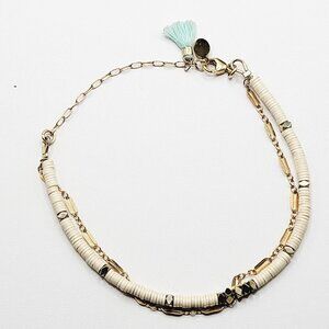 Blaine Bowen Beach Signature Stack Bracelet Double Strand Vinyl Discs Gold Tone