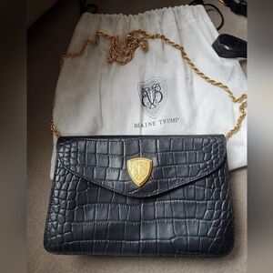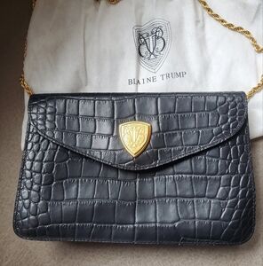 Blaine Trump Purse Black Croco Embossed Leather convertable clutch with 2 straps