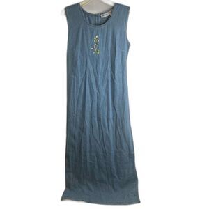 Blair 2 PC SET Vintage Embroidered Denim Maxi Dress with Denim Jacket Sz Medium