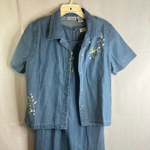 Vintage Blair SET Embroidered Denim Maxi Dress with Denim Jacket Size Medium