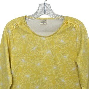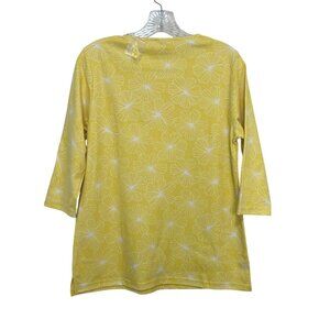 Blair 3/4 Sleeve Top Womens PS Petite Small Yellow New Floral Button Shoulder