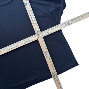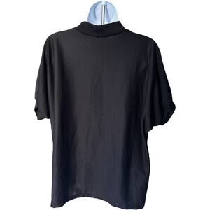 Minimalist mock neck short sleeve pullover top in black with embroidered bee crest. Relaxed XL/1X plus fit. Soft cotton-blend fabric. 1990s vintage. Tonal logo, classic silhouette. Condition: excellent, tag fraying.