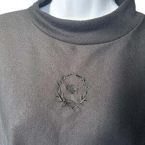 Blair Black Bee Crest Mock Neck Top XL 1X Plus Embroidered Relaxed Minimal 90s