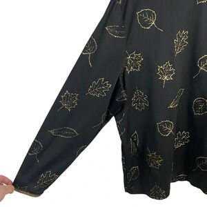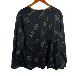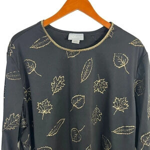 Blair Black Gold Glitter Leaf Leaves Pattern Blouse Plus Size 2X Dressy Holiday