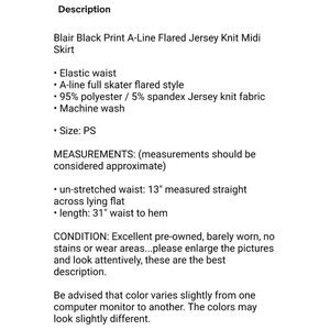 Blair Black Print A-Line Flared Jersey Knit Midi Skirt PS Packable Office Work