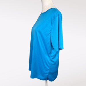 Blair Blue Short Sleeve Top Pullover Blouse Keyhole Back Size Medium