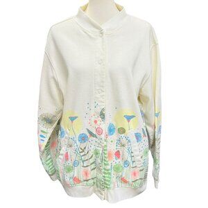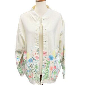 Blair Cream Floral Snap Front Jacket Women's L Spring Garden Print Lightweight